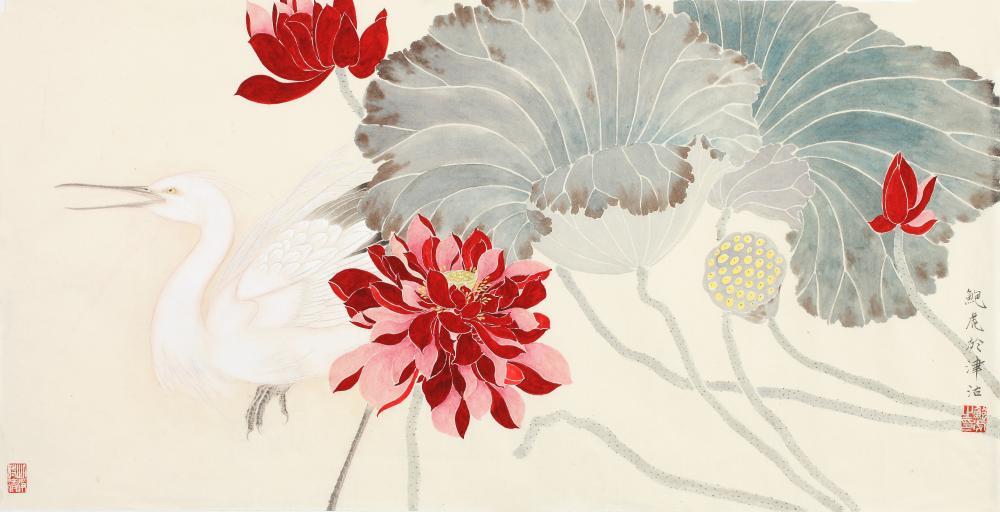 | 作品名称 | 画家鲍虎 荷花白鹭 |
